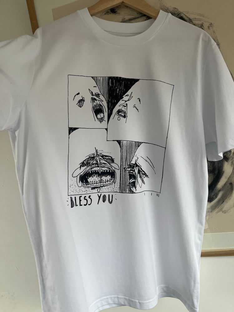 Screen printed in Sheffield by Hunk Print on 100% cotton white tee.